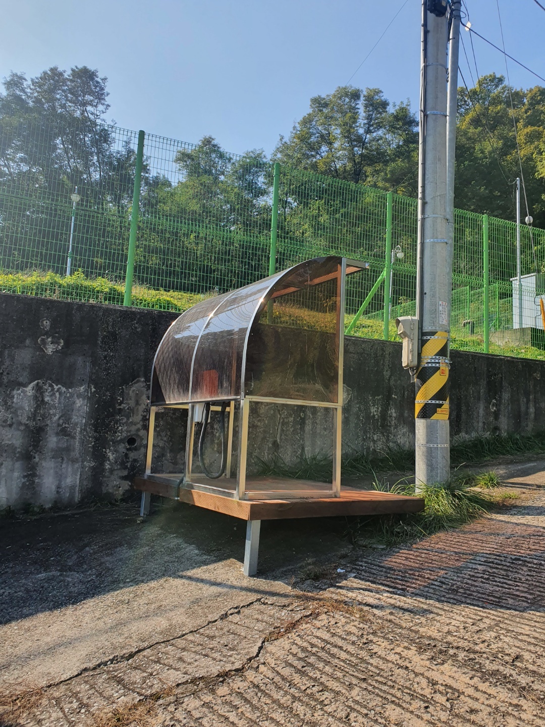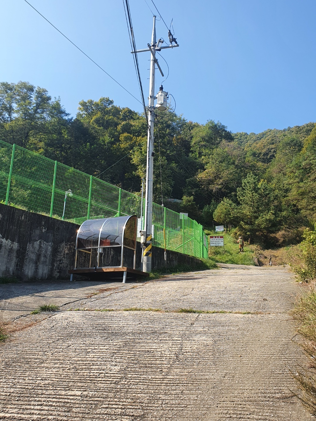 설치하는데 등산길이라 비가림 구조물을 따로 주문하셔서 저희는 흙먼지털이를 보내드리기만 했어요