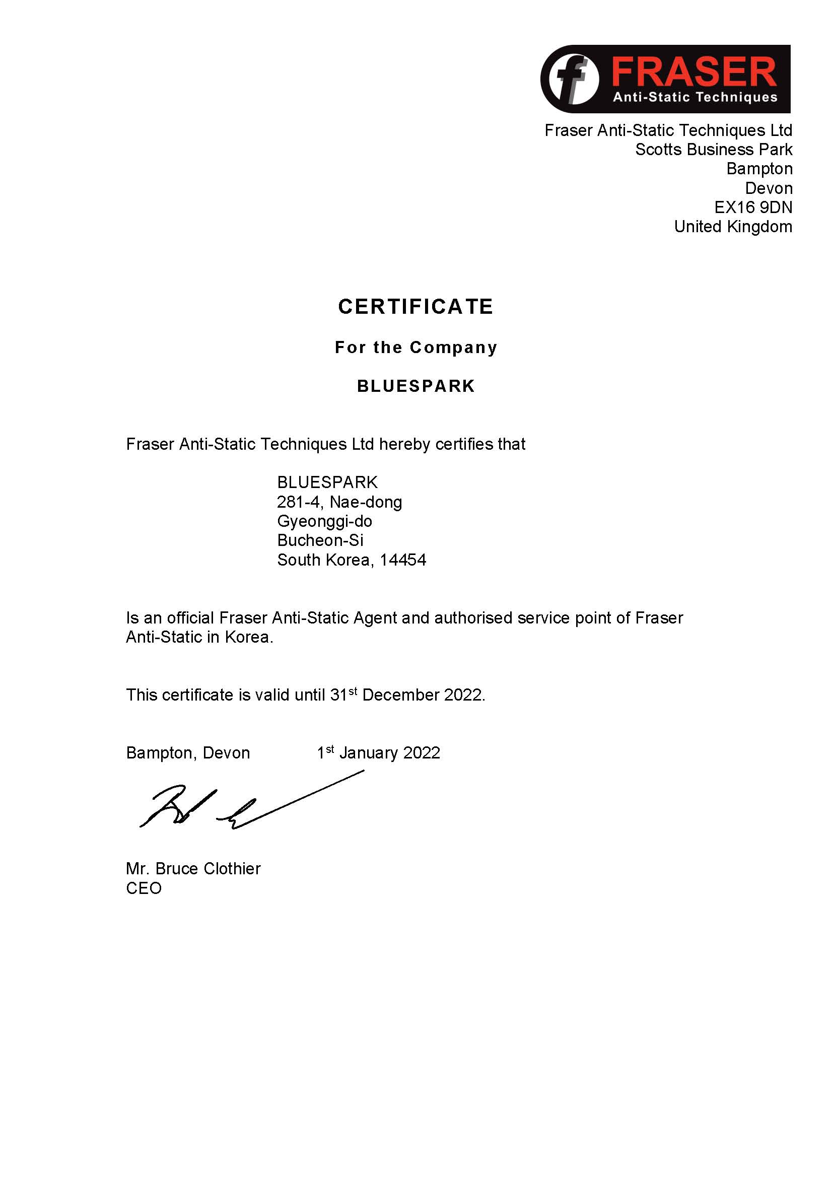 벌써 10년 넘게 FRASER 와 국내 총판계약을 해오면서 블루스파크가