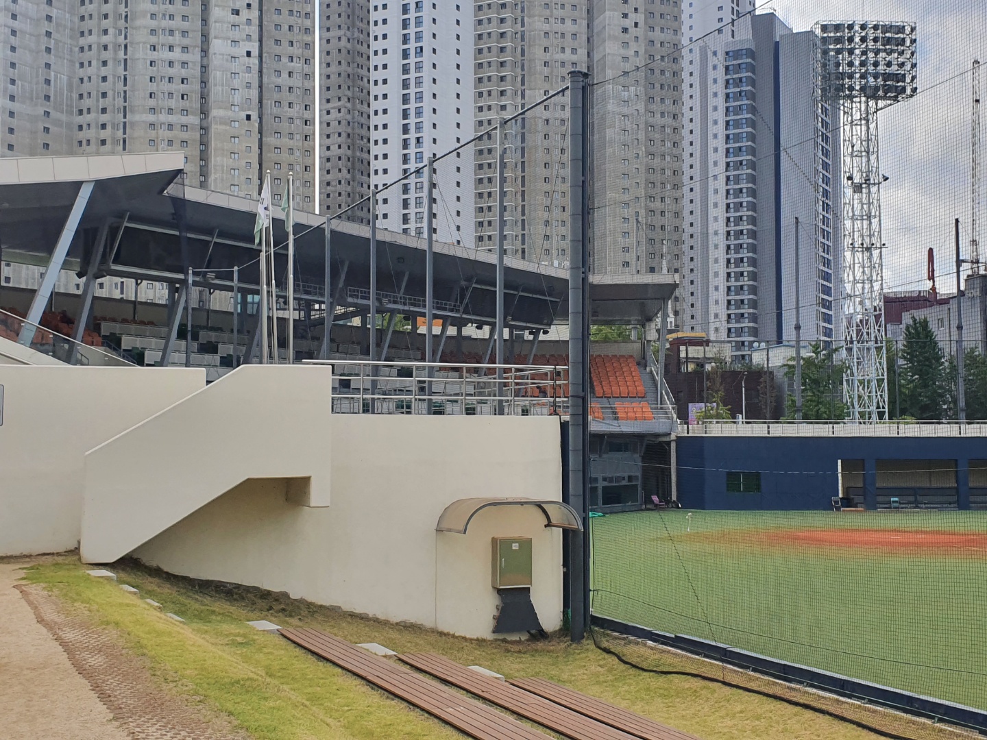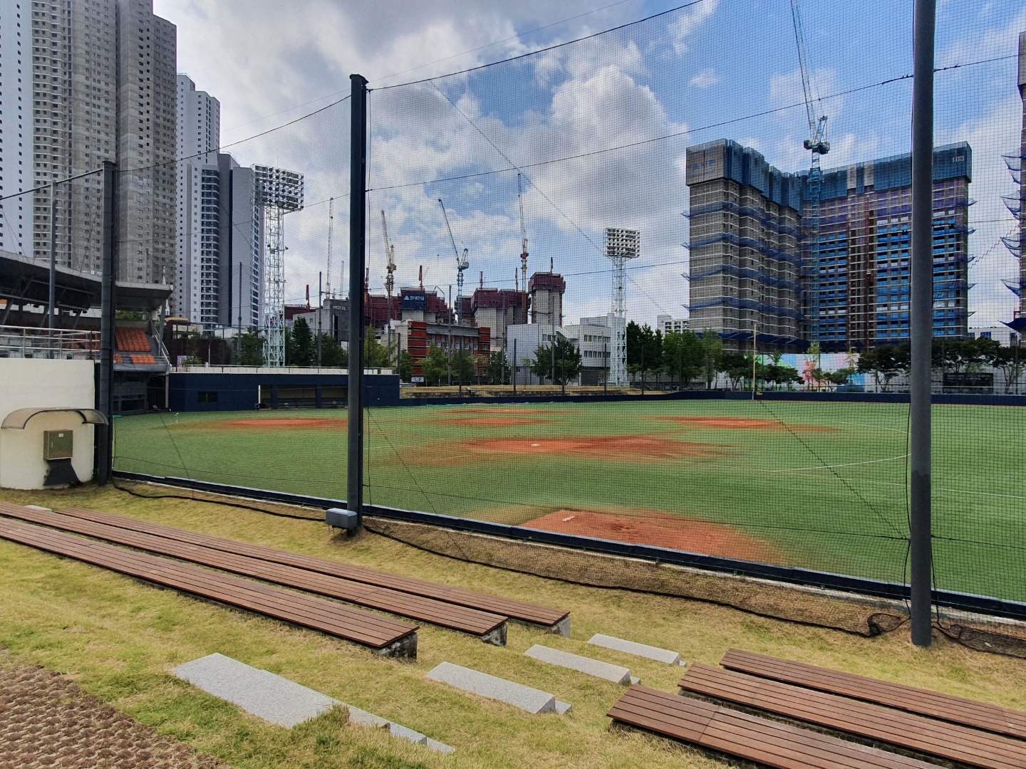 야구하러 왔는데 오히려 시설물이 많아서 왠지 좁아 보이는 것처럼
