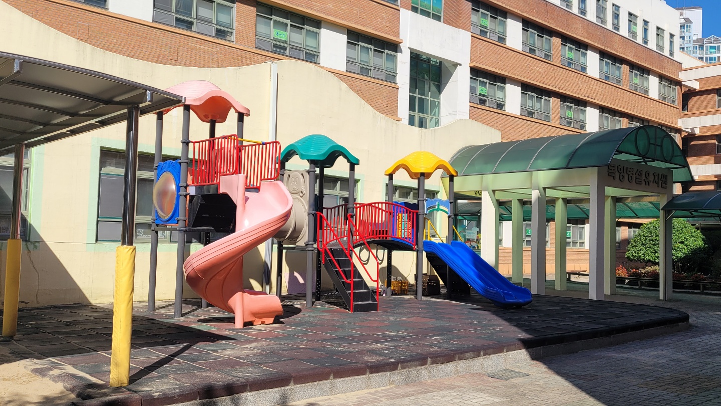 유치원도 아이들 살기에 증말 좋은 곳인데 따뜻하게 야외활동후 먼지 털라고