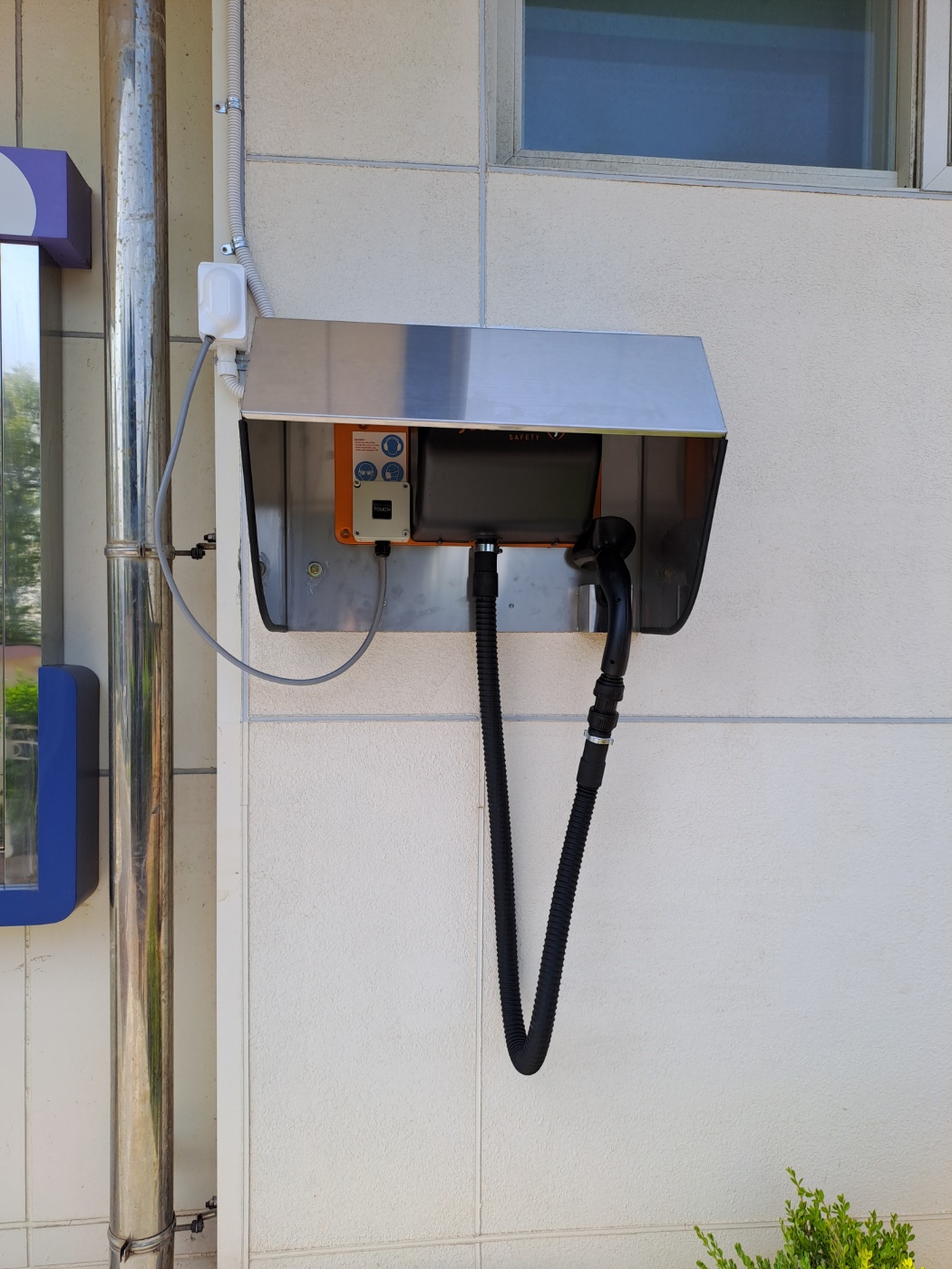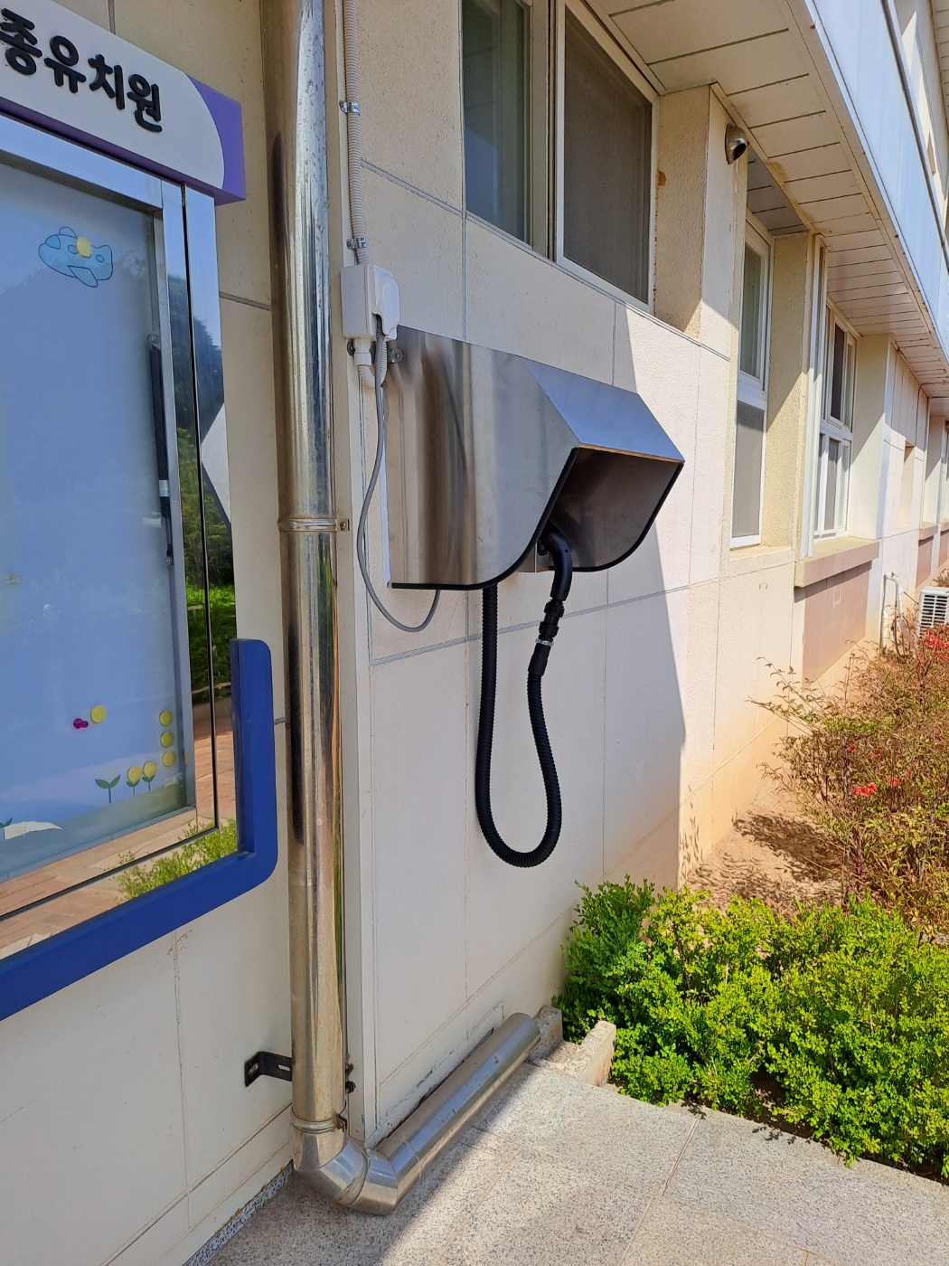 외부 벽에 설치하기 때문에 비가림 덮개가 필요합니다