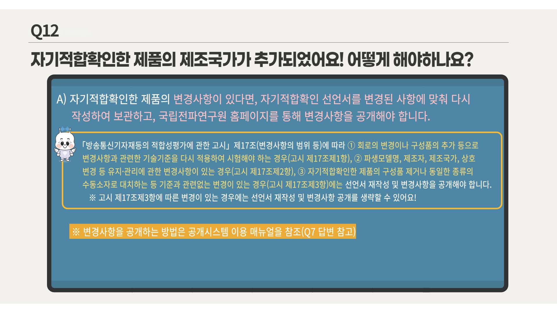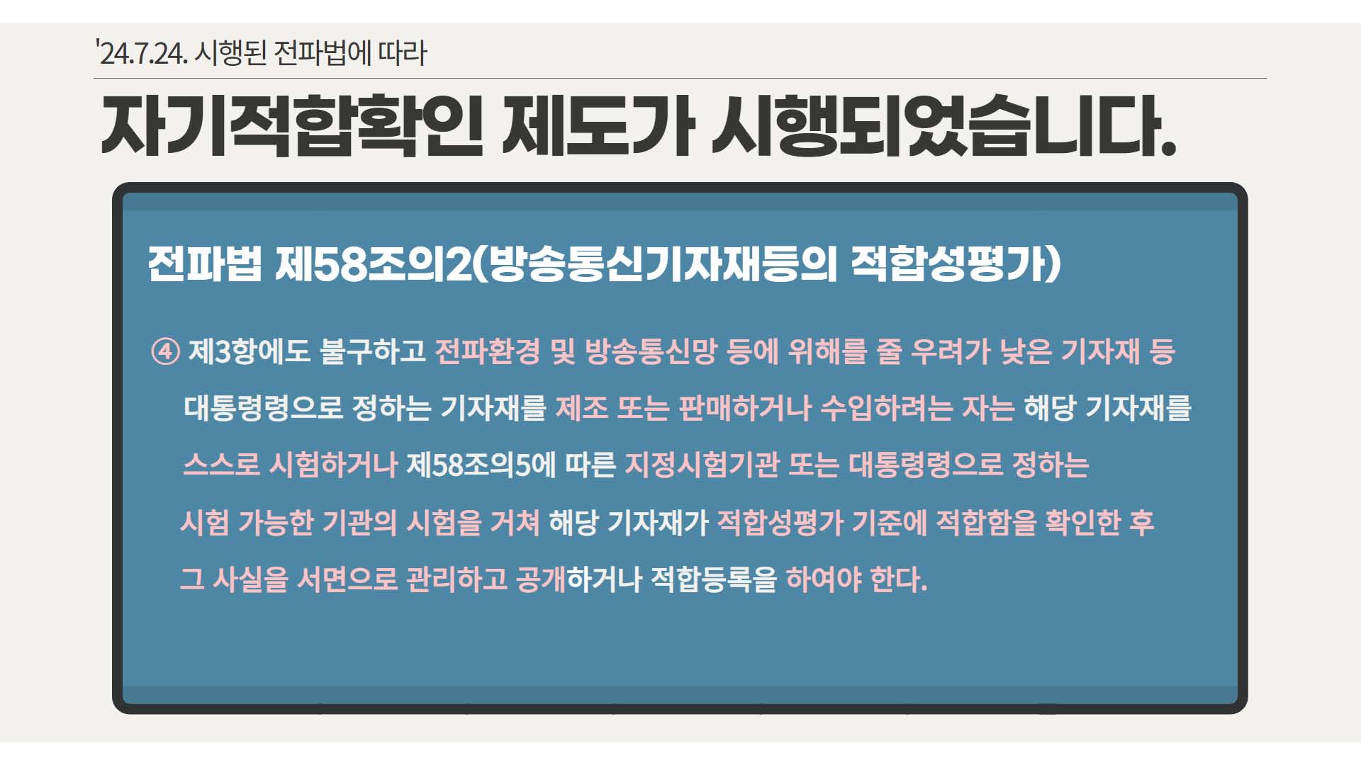 24년 7월에 전파 인증에 대해서 자기적합성 확인제도가 생겼다고 하더군요