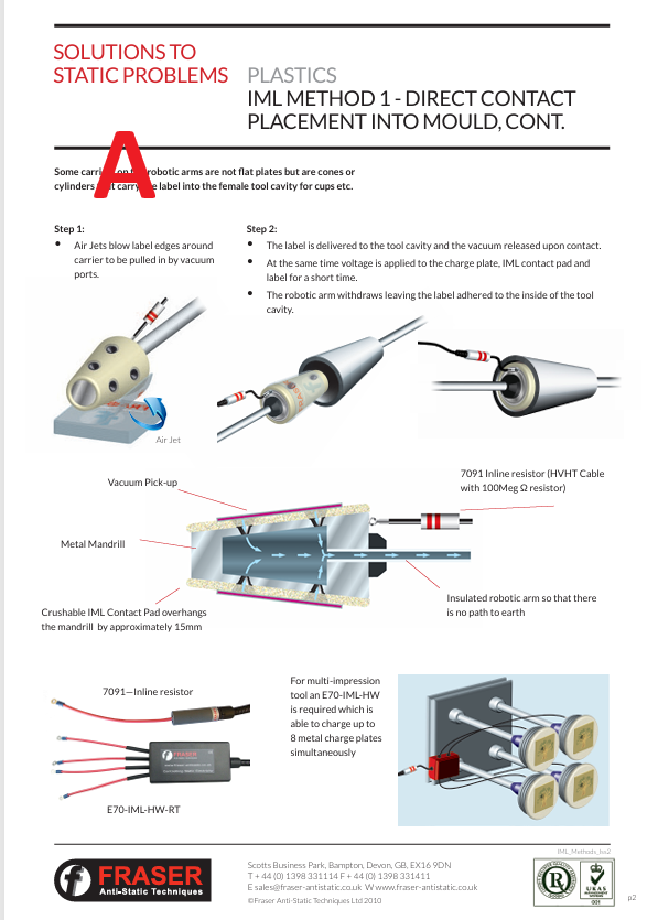 IML(인몰드 라벨링)은 플라스틱 제품을 제조할 때, 디자인 라벨을 미리 금형(틀)에 넣은 뒤 플라스틱을 녹여 부어넣어 제품과 라벨이 하나로 결합되게 하는 기술이에요. 이 과정에서 정전기가 라벨을 금형에 정확히 붙잡아주는 역할을 합니다.