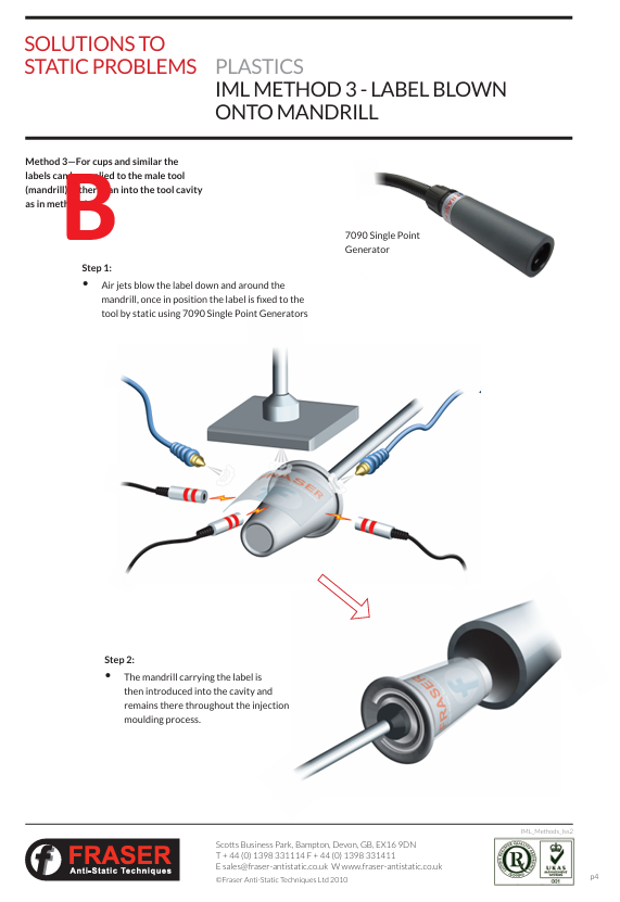 정전기 활용: 정전기발생장치를 사용해 라벨이 금형 안에서 부착되도록 유도한다.