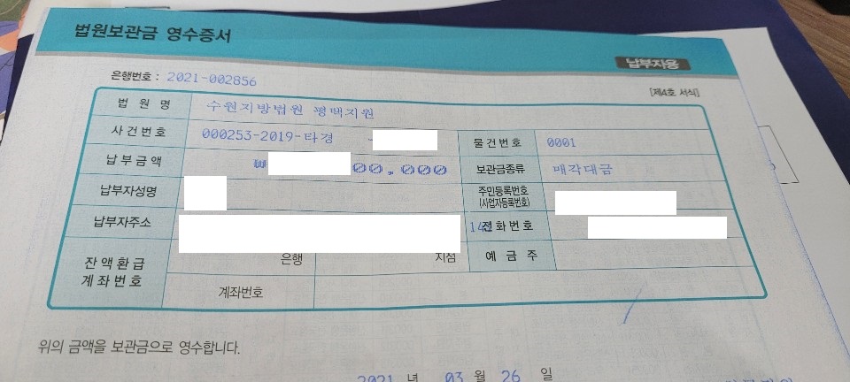 그 다음 절차로 잔금 완납을 하러 오면 먼저 법원 보관급 납부 명령서를 가지고