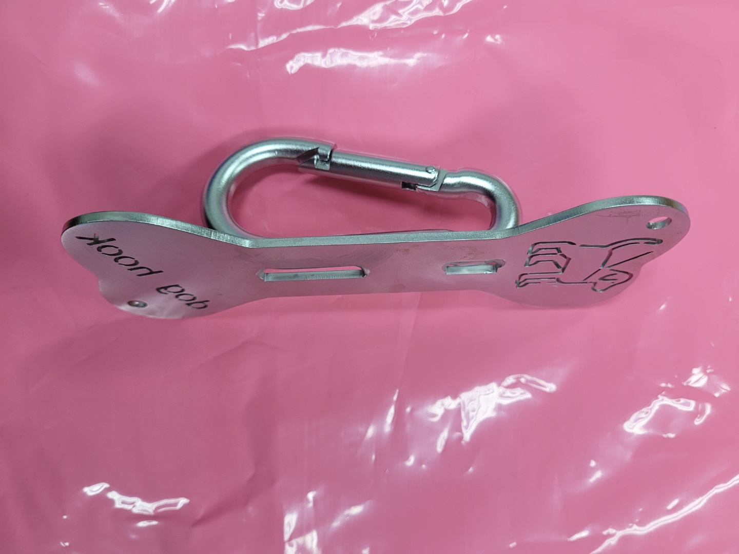 모양은 뼈다귀 모양에서 리드선과 도그 후크라는 글자가 선명하게 보이는 제품입니다